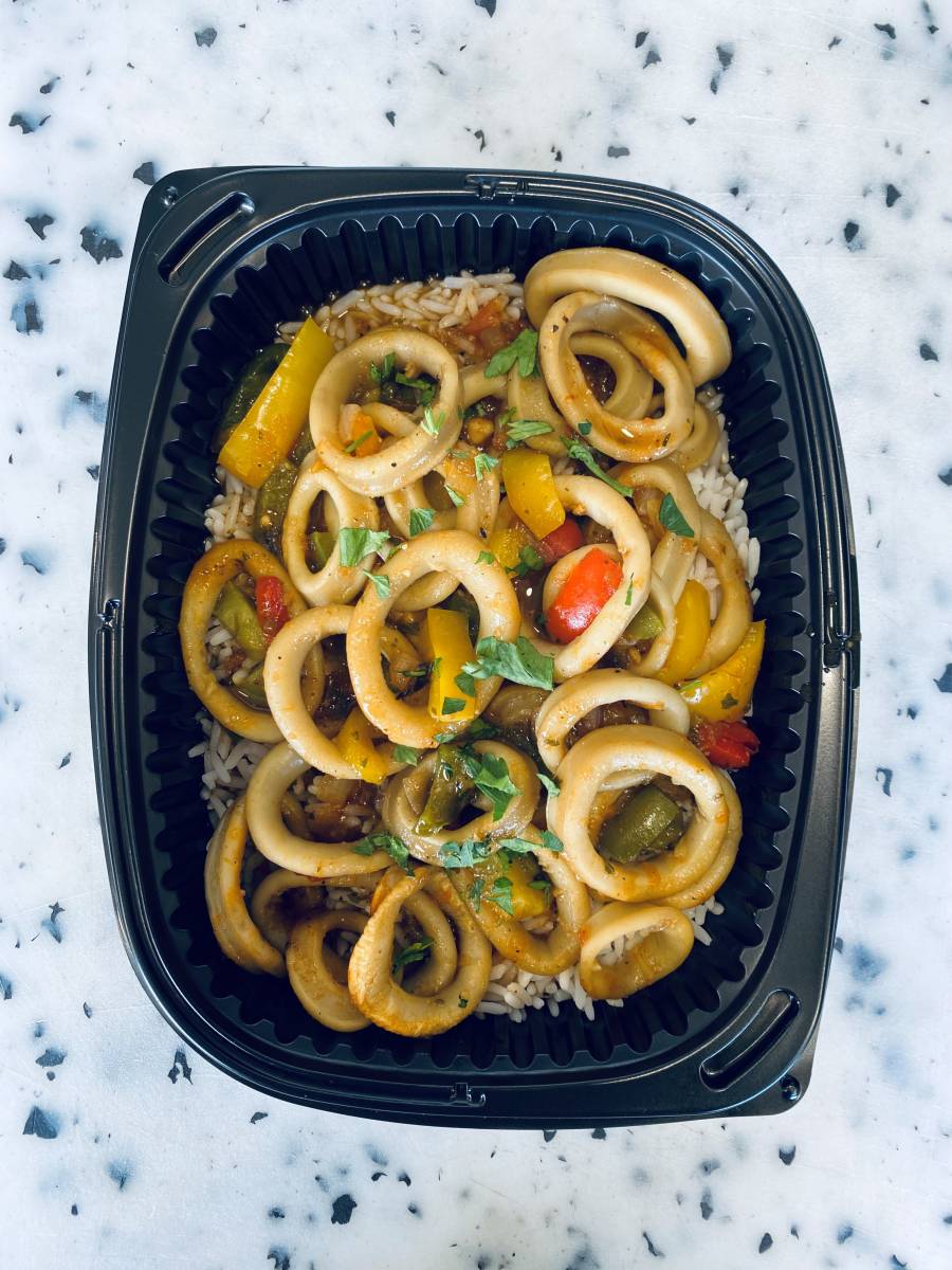 Grand classique, nos calamars à la provençale sont proposés avec des poivrons (jaunes, verts et rouges) coupés en lamelles, ainsi qu'un jus à base de fumets et d'une légère touche de concassé de tomate.